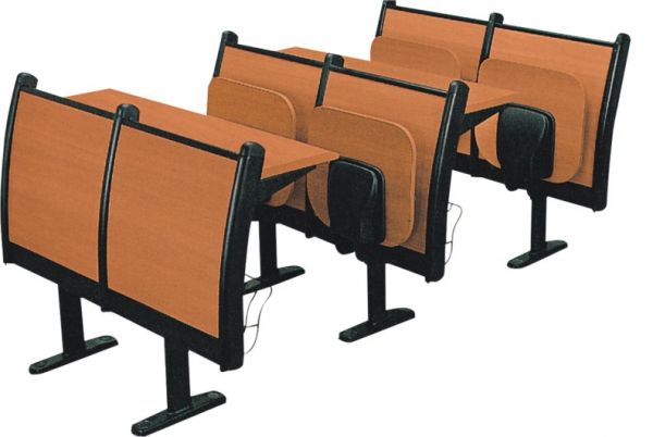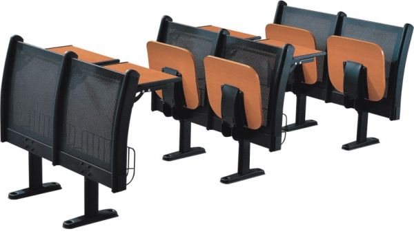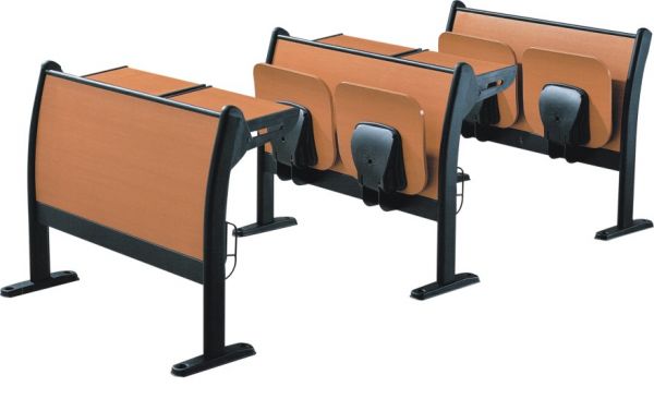 e. 内藏折叠式写字板,写字架原材料采用铝合金,写字板采用三聚氰氨板,可收藏于扶手脚内,合理利用使用空间。
